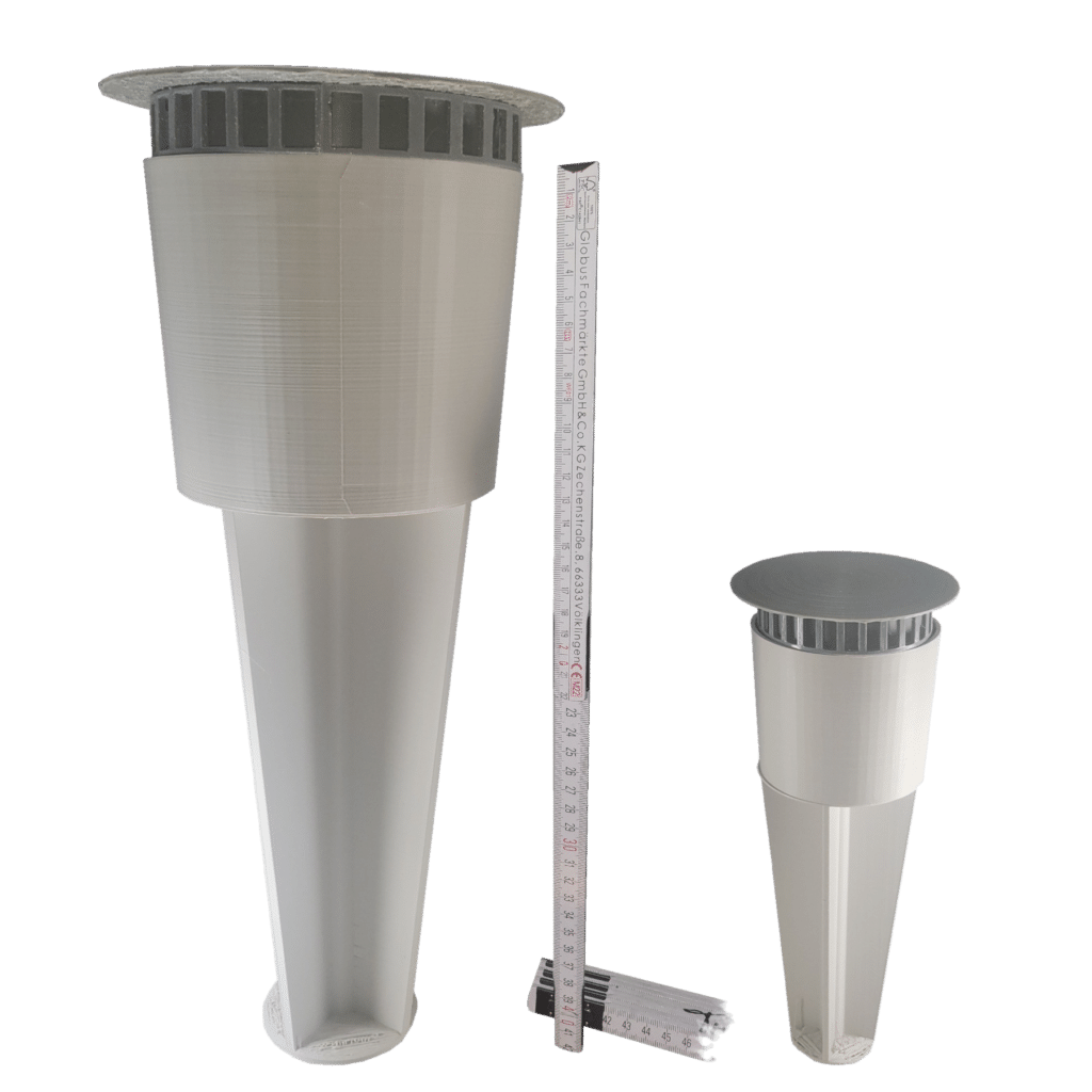 Die Drucker ließen sich zwar auf die entsprechende Vergrößerung umrechnen, jedoch war der Stiel bereits rund 30 cm hoch. Das Bauvolumen der größten Drucker hier beträgt 45 cm in der Höhe. Jetzt fragt bitte niemand, wann diese Höhe zuletzt genutzt wurde – ich kann mich nicht erinnern, sie jemals so hoch genutzt zu haben. In einer Umgebung wie einer 3D-Druckproduktion kann die Höhenachse der Drucker durchaus „eingeschlafen“ sein, einfach weil sie nicht genutzt wurde.