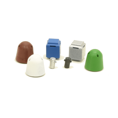 Das Set besteht aus drei lackierten Containern in den Farben Weiß, Grün und Braun. Jeder Container hat einen Durchmesser von etwa 10 mm und ist 11 mm hoch. Am oberen Rand sind drei kleine Löcher eingelassen, durch die du das Altglas einwerfen kannst. Die Container sind in dieser Form typisch für die Epochen IV und V. Heutzutage werden sie oft durch viereckige Metallversionen ersetzt, aber mit diesem Set kannst du die vergangenen Zeiten zum Leben erwecken.