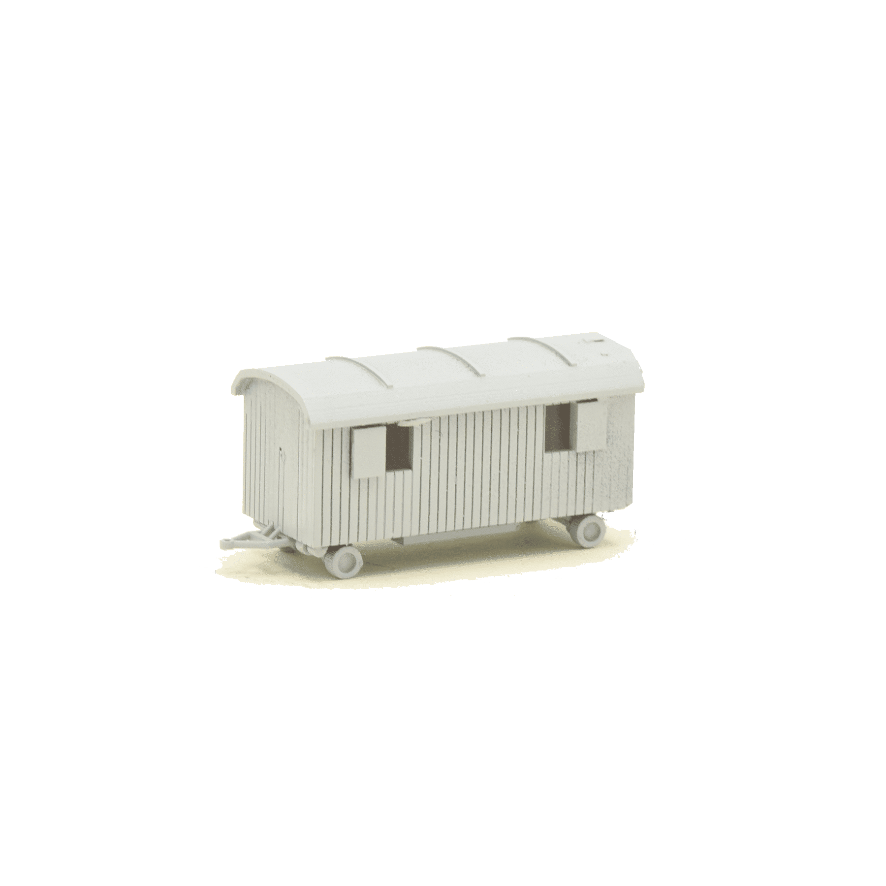 Dieses Modell ist grundiert in grau und verleiht deiner Baustelle einen authentischen Look. Die Deichsel, Reifen und Achsen sind nicht gesondert lackiert und passen perfekt zur Farbe der Wände. Lass dich von vergangenen Epochen inspirieren, denn in der heutigen Zeit trifft man solche Bauwagen-Anhänger kaum noch an.