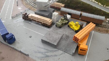 Stell dir vor, du kannst deine Ladegüter mühelos von Land auf die Schiene verladen und dabei einen reibungslosen Logistikbetrieb gewährleisten. Mit dem Spur N Güterumschlag Schiene Ladedock 160mm ist das jetzt möglich!