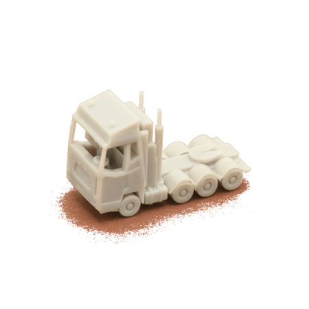 • Bereits lackiert: Zugmaschine und Auflieger in Gelb, Ladegut in Grau-Silber