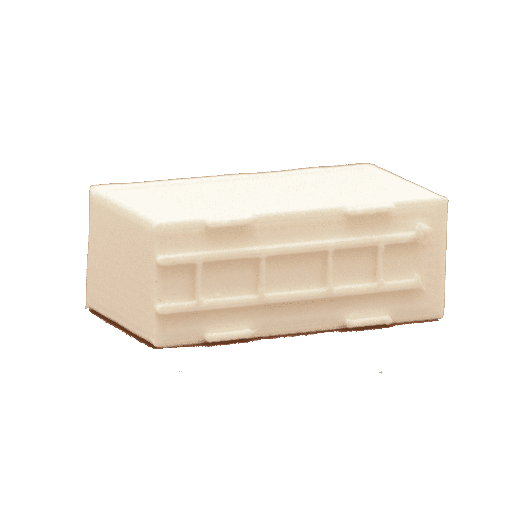 Das Material ist kompatibel mit herkömmlichem Modellbaukleber sowie Lack- und Acrylfarben. Achte darauf, dass Sekundenkleber das Material angreifen kann. Der Motorwagen ist grau grundiert.