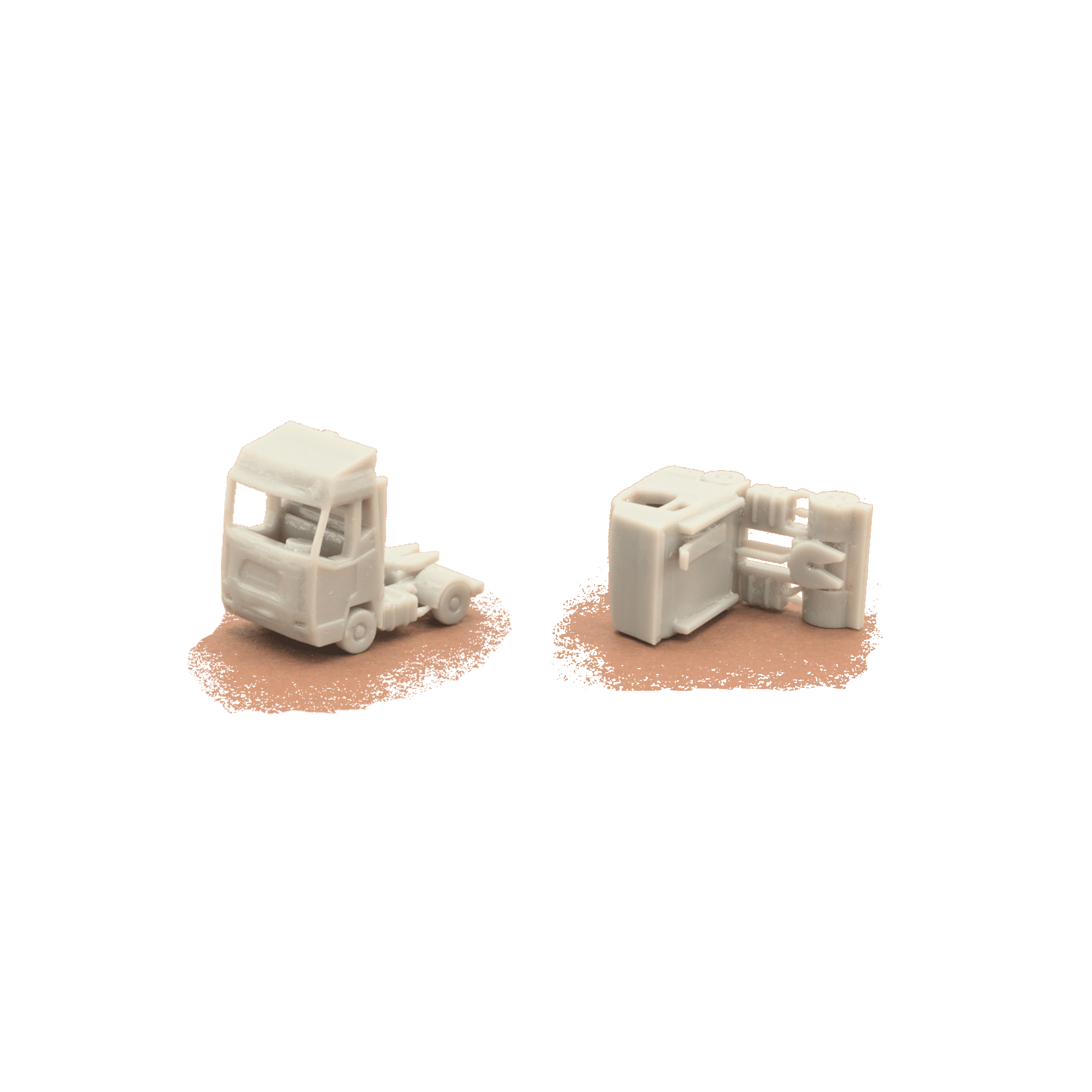Das Aussehen dieser Maschine orientiert sich grob an einem Querschnitt durch die LKW-Welt und ist keinem speziellen Hersteller nachempfunden.