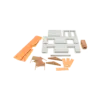 4x rote Wände, 2x kupferne Dachschrägen, 1x Stahlträger fürs Dach, 8x kupferne Schiebetüren, 4x kupferne Fronttüren, 1x Schornstein und 2x braune Giebelteile.