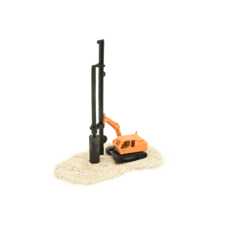 Unser Mäkler Drehbohrgerät ist der Star jeder Miniatur-Baustelle. Aber was macht dieses kleine Wunderwerk eigentlich? Stell dir vor, du müsstest in deiner Modellwelt schwere Lasten tragen. Unser Mäkler bohrt dafür die perfekten Löcher, in die dann Bewehrungskörbe gesetzt werden. Et voilà – schon hast du stabile Pfeiler für deine Miniatur-Meisterwerke!