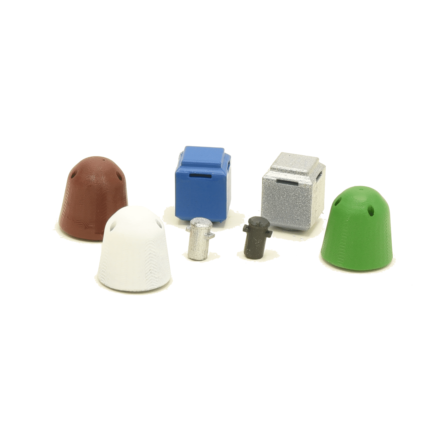 Die einzelnen Mülltonnen können ganz einfach aus dem 3er Tray herausgebrochen werden, was die Anpassung an deine individuellen Bedürfnisse erleichtert. Das Set ist lackiert und besteht aus einem modellbaufreundlichen Material, das den üblichen Modellbaukleber sowie Lack- und Acrylfarben verträgt. Bitte beachte jedoch, dass Sekundenkleber das Material angreifen kann und daher nicht empfohlen wird.