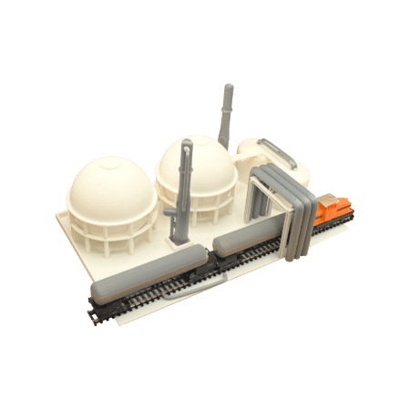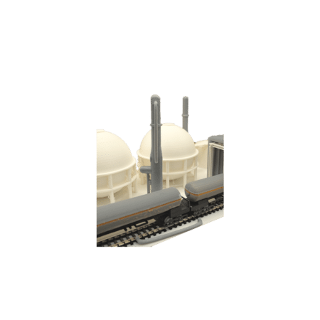 Wie abgebildet, ist eine einzelne Spur N Gleisbreite in die Grundplatte eingearbeitet für Rangierbetrieb an einer Abfüllstation.