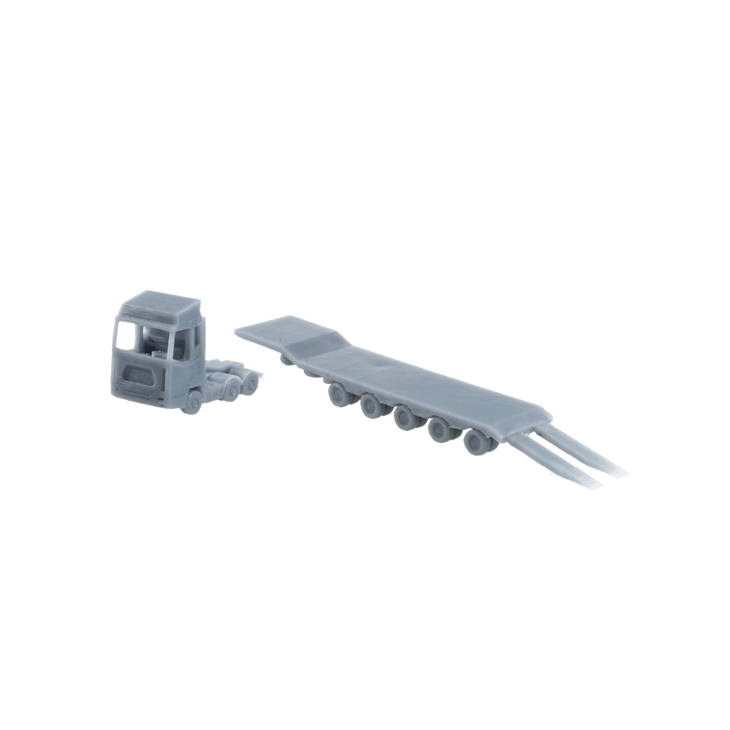 Zusatzinfo: Beide Komponenten (Auflieger und Zugmaschine) sind auch einzeln erhältlich. Als Ladung eignet sich unser Bagger in Transportstellung perfekt, welcher in verschiedenen Farben verfügbar ist.