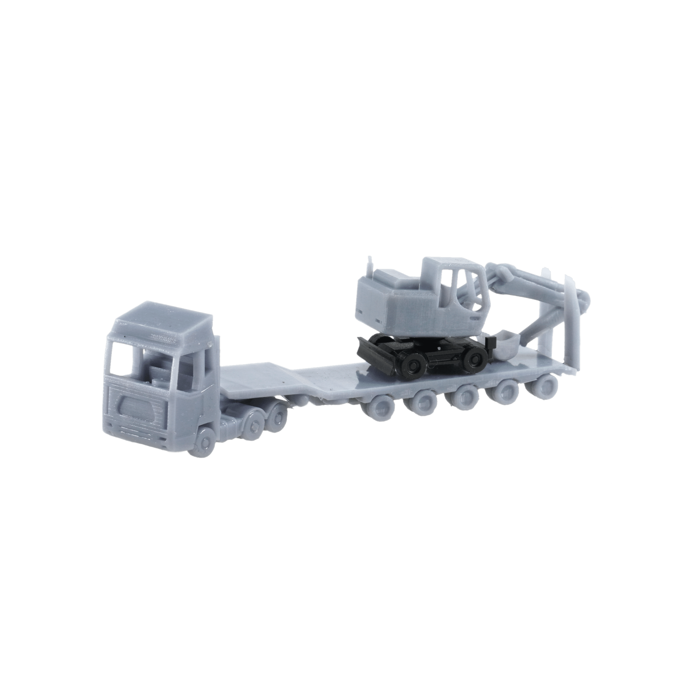 Also, worauf wartest du noch? Hol dir den Spur N LKW mit Semitieflader und Bagger unlackiert und bring deine Modellbahn auf das nächste Level!