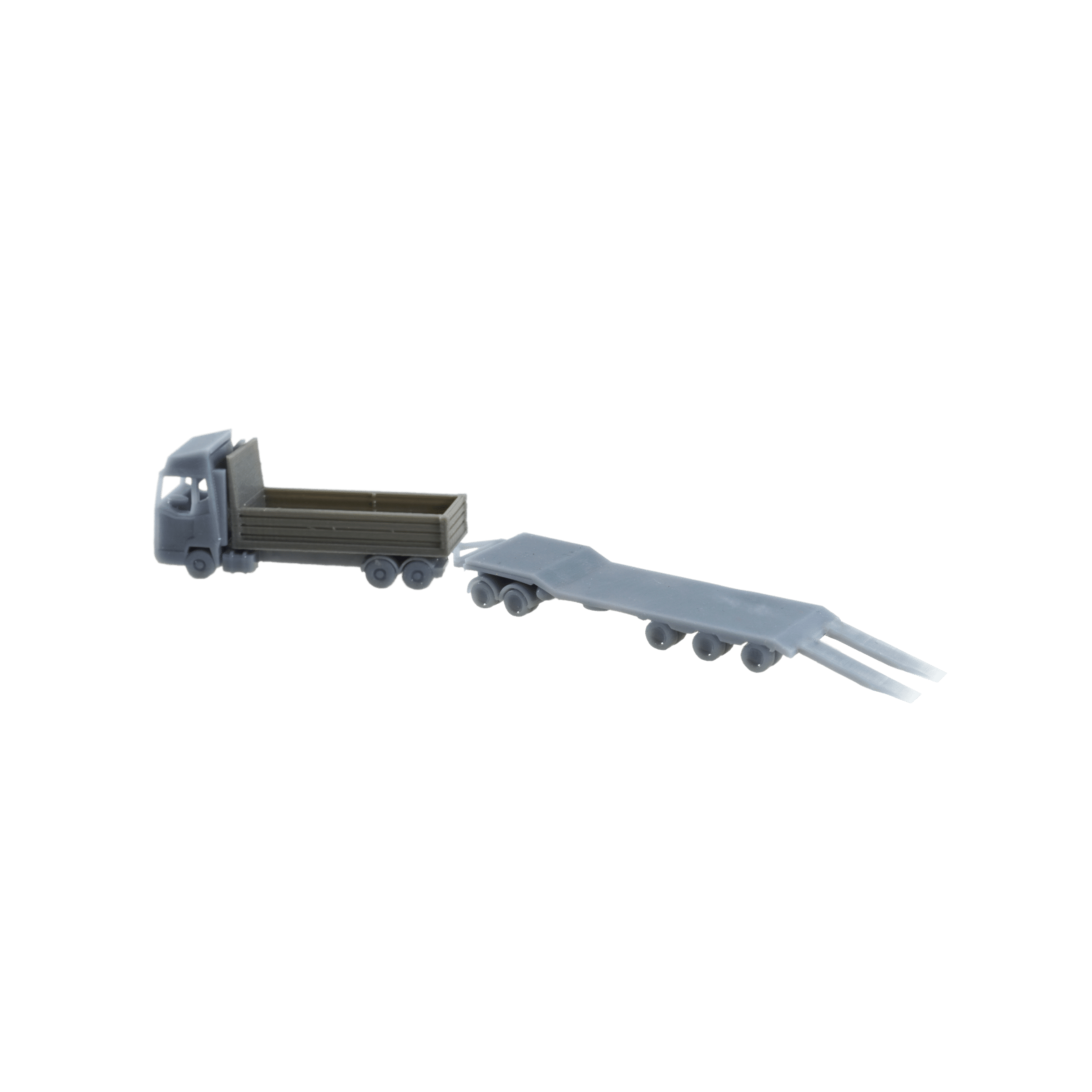 Dieser Tieflader, auch als „überfahrbarer Anhänger“ bekannt, ist perfekt für all deine Bauprojekte. Mit seinen detaillierten 3D-Druck-Elementen bringt er realistische Szenen direkt auf deine Modellbahnanlage. Die Rampen kannst du einmalig in die gewünschte Position bringen und fixieren – also auch perfekt für Szenen der Beladung.