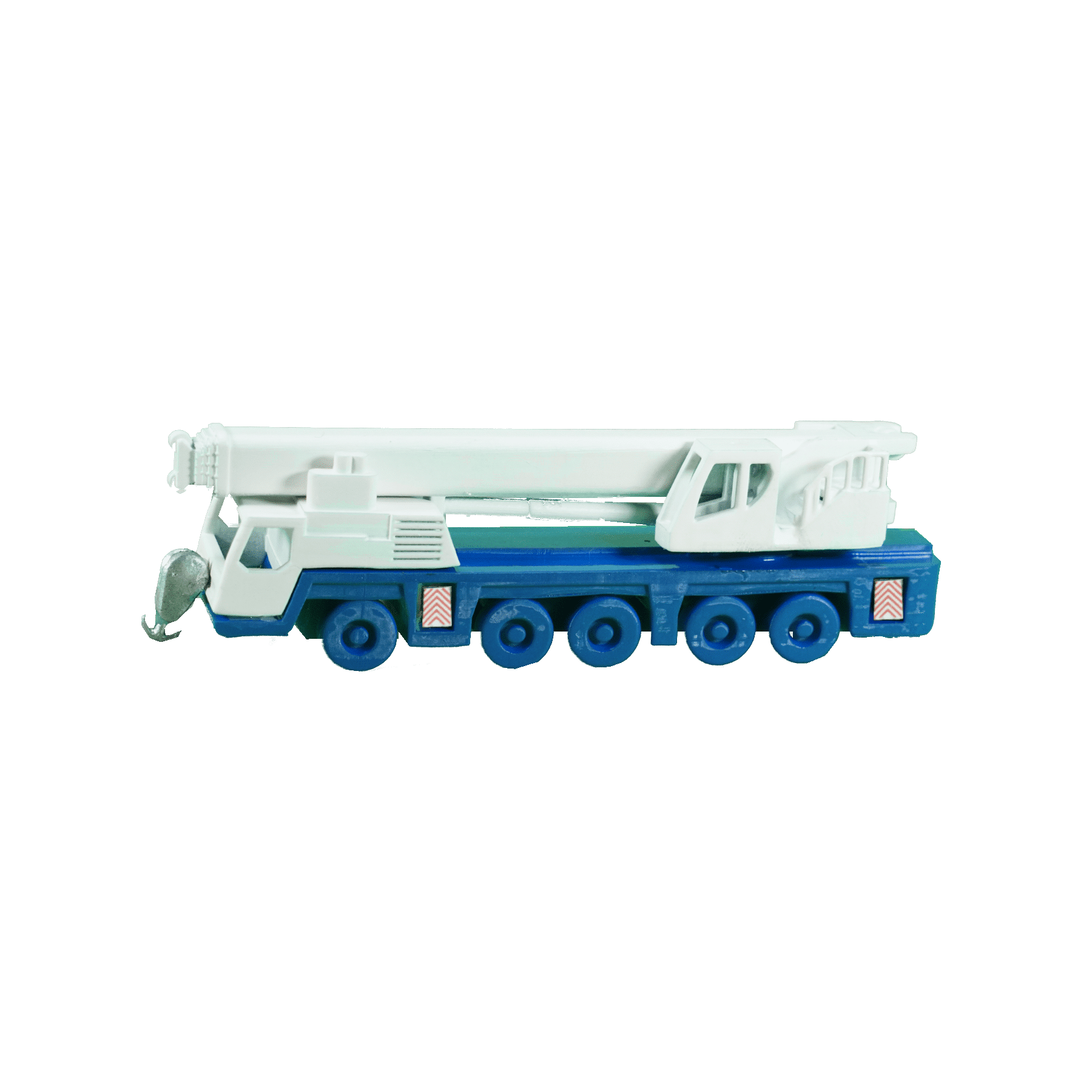 Erweitere deine Spur N Modellbahnanlage mit diesem detaillierten Mobilkran in weiß-blau. Dieses mehrfarbig lackierte Miniatur-Modell im Maßstab 1:160 bringt authentische Baustellenatmosphäre auf deine Anlage.