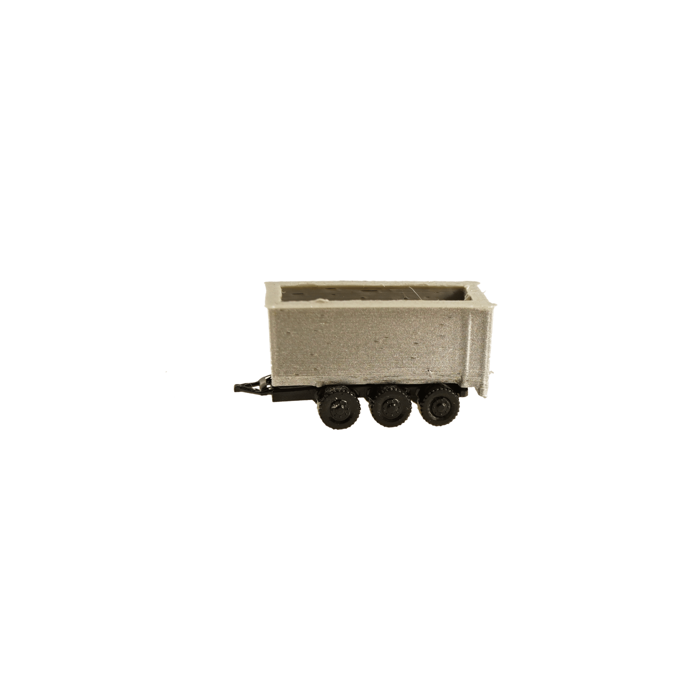 Einige Achsen und der Rahmen könnten bereits vormontiert sein. Diese sind schwarz lackiert, während die Mulde selbst in einem eleganten Silber erstrahlt. Beachte, dass es in der Mulde am Boden Unregelmäßigkeiten geben kann, die durch den Herstellungsprozess bedingt sind – diese bitte nicht entfernen, da dies das Modell beschädigen kann.