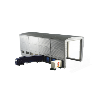 Die Abmessungen von 250 x 120 x 100 mm (L/B/H) im aufgebauten Zustand machen die Halle zu einem imposanten Mittelpunkt deiner Szenerie. Der einfache Aufbau ermöglicht dir eine schnelle Integration in dein bestehendes Layout.