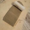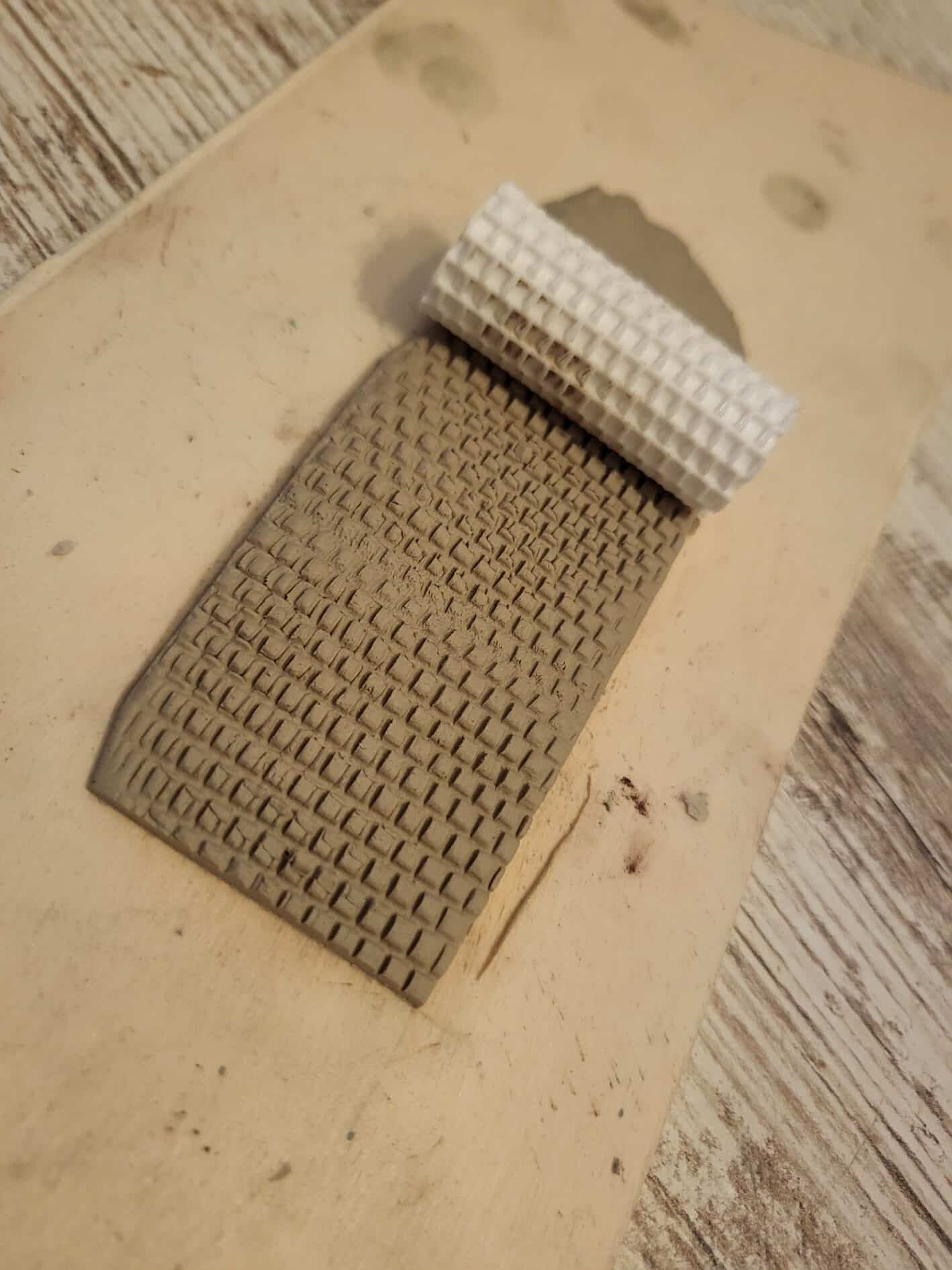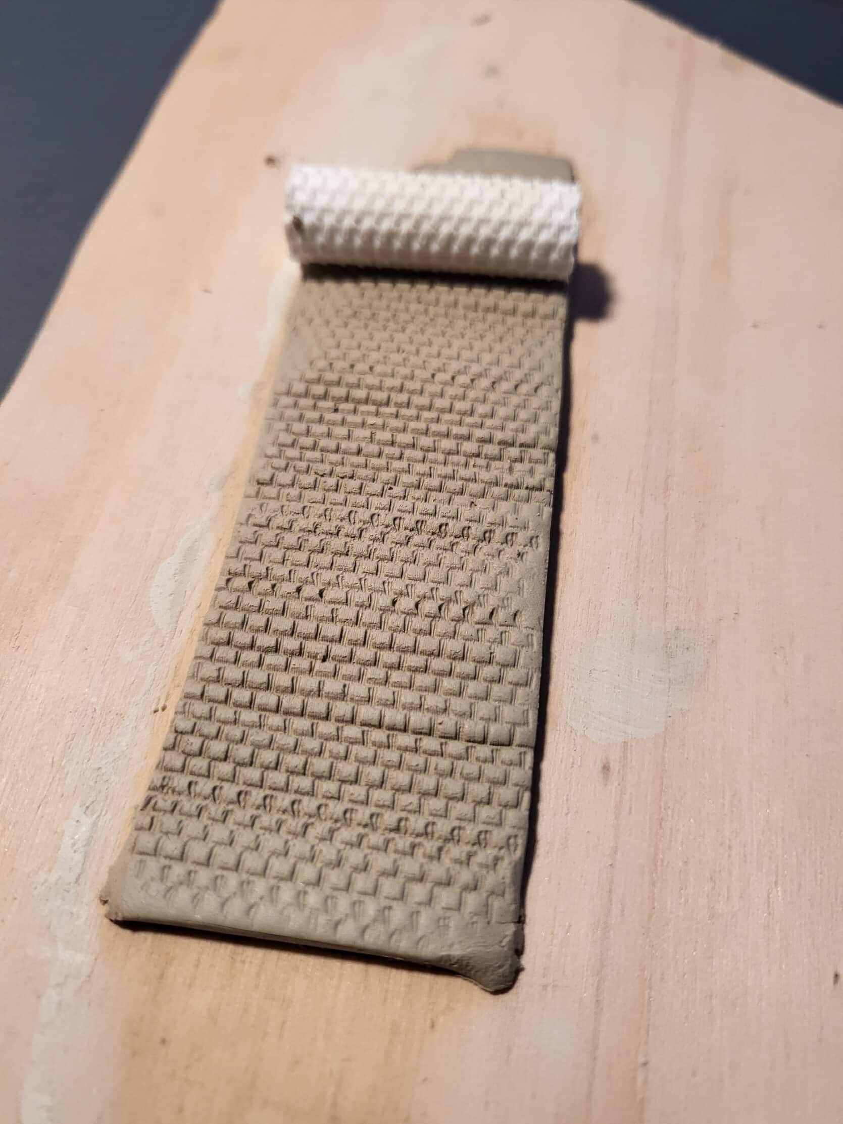 Die Anwendung der Strukturrolle ist denkbar einfach: Du kannst Materialien wie FIMO, Ton oder Knetmasse verwenden (Gips ist nicht geeignet). Rolle das zu prägende Material zunächst auf eine Dicke von ca. 2-4 mm aus und verwende einen harten „Naht“-Roller aus dem Baumarkt (Tapeten-Abteilung). Befeuchte das Material nicht zusätzlich! Rolle dann mit gleichbleibendem Druck über das frisch ausgerollte Material hinweg. Anschließend lässt du es gemäß den Anweisungen des Materials aushärten.