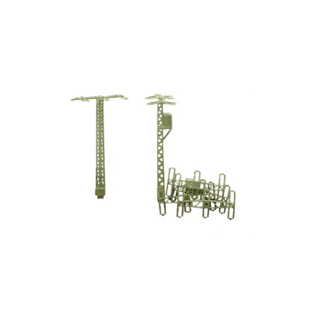 Mit diesem originalgetreuen Nachbau bringst du deine Modelllandschaft auf das nächste Level. Die filigrane Verarbeitung und die maschinengrüne Lackierung der Masten sind echte Hingucker. Jeder Mast ist mit einem stabilen Standfuß versehen, der problemlos in eine 5.4mm breite Bohrung gesteckt werden kann – so bleibt alles an Ort und Stelle.